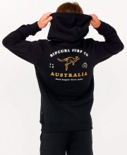 Buzo Rip Curl STD Road Trip. COTTON POLY FLEECE BRUSHED 260 G. STANDARD FIT. Etiqueta Tejida. Estampa Frente + Espalda. Bolsillo Canguro.