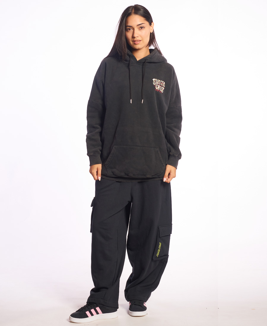 Buzo Santa Cruz Rose Skull de frisa 100% algodón, boxy fit, lavado acid, estampas en frente y espalda, ojales bordados a tono, cordones a tono, etiquetas marcarias