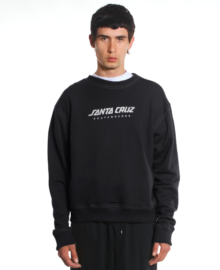 Buzo Santa Cruz Solid Strip Front Crew. Buzo escote redondo rústico 100% algodón, oversize fit, lavado suavizado, bordado en el frente, costuras a contratono terminación al corte, etiquetas marcarias.