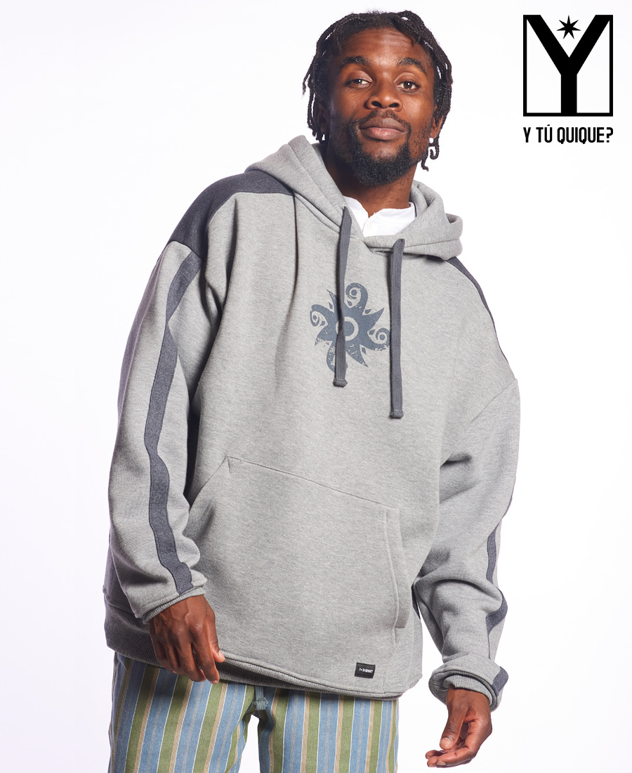 Buzo Y Tu Quique? Boxy Print FRISA. 50% ALGODON 50% POLIESTER. Boxy fit. Etiqueta de marca y talle. Estampa serigrafica. Piezas combinadas. Grifa de marca.