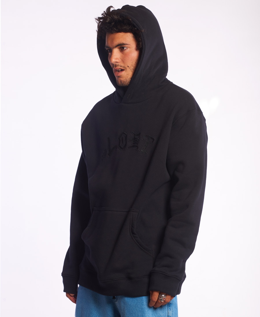 Buzo Lost Emby. Buzo de frisa, relaxed fit, bordado en frente, vivos a contratono en sisa y dobladillo de bolsillo, capucha a contratono, etiquetas marcarias.