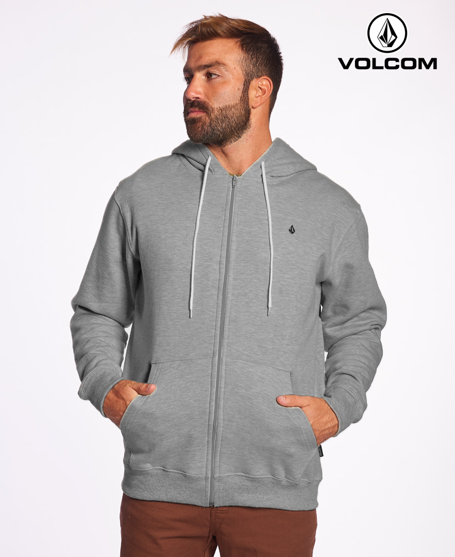 Buzo Volcom Zip Fleece. Frisa 50% algodón 50% poliester. Bordado Volcom Stone en frente. Cordones al tono con puntera metálica. Bolsillo canguro. Grifa tejida. Limpieza de cuello rayada. Regular fit.