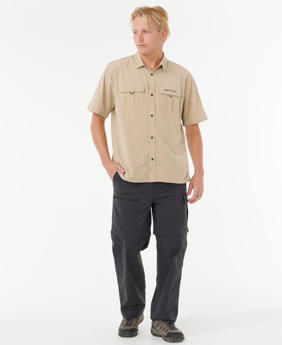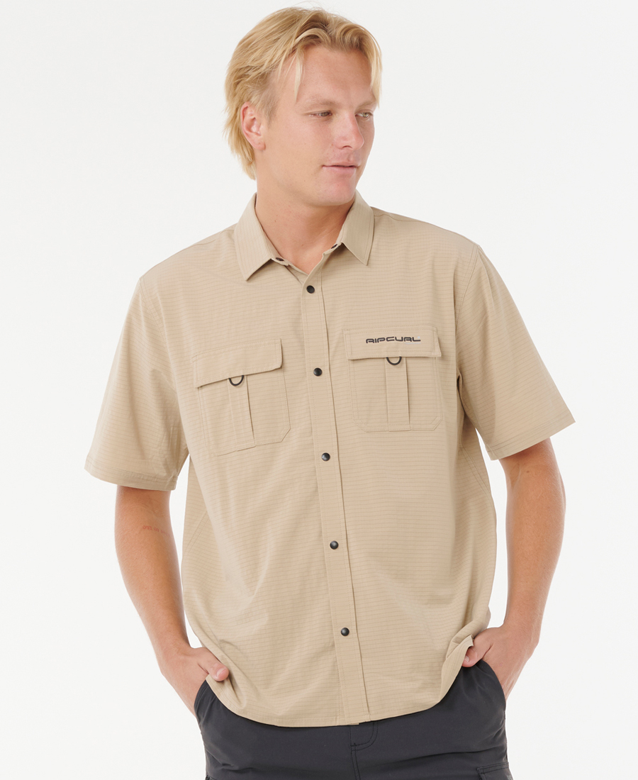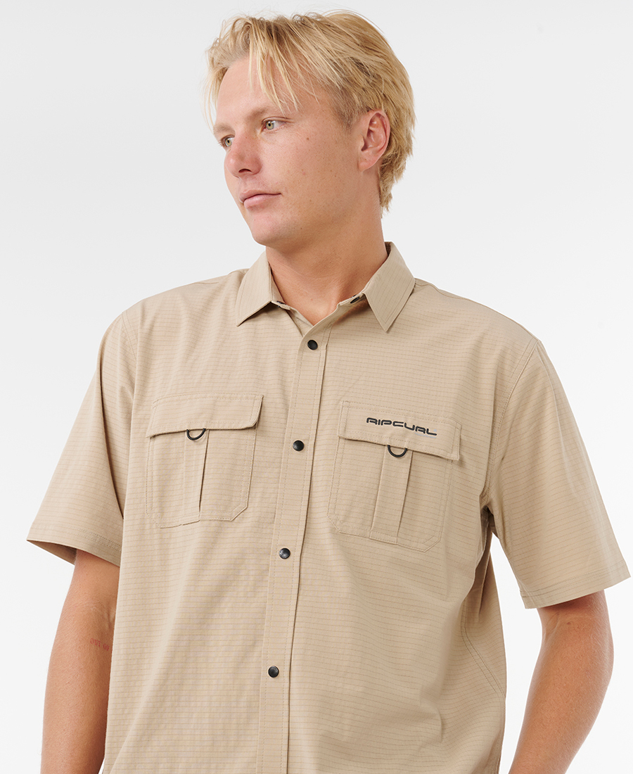 Camisa Rip Curl Loose Search VC. POLY BLEND STRETCH AEROTECH 130G. LOOSE FIT. Control de Humedad VAPORCOOL. Broches a Presion (Snaps). Parche Tejido. Transfer.