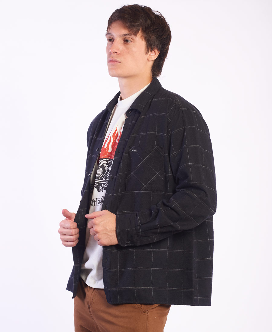 Camisa Volcom Stealth Grifa Volcom en bolsillo • Bordado en espalda • Botón personalizado • Cenesú volcado • Boxy Fit