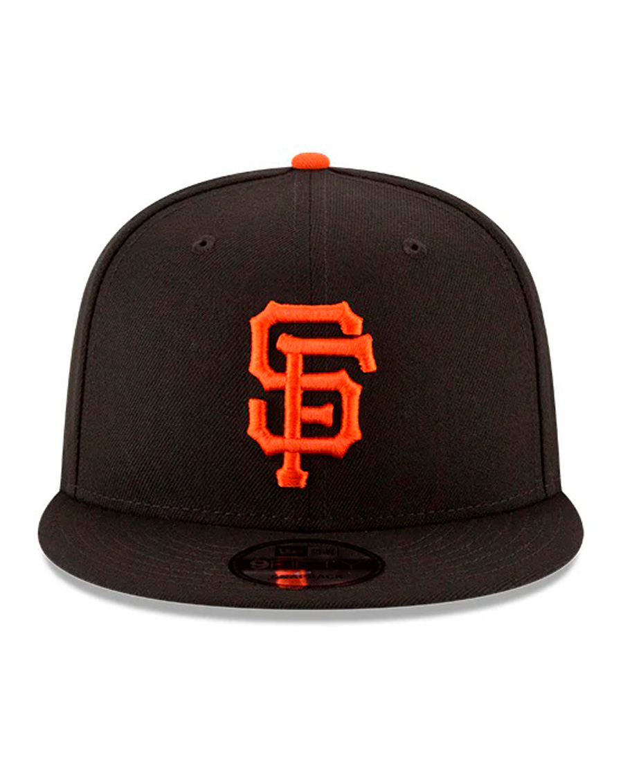 Cap New Era 9Fifty San Francisco Giants - MLB - Seasonal Collection. Esta gorra ajustable presenta visera plana rígida en negro mate que aporta un estilo urbano contemporáneo, construcción de corona estructurada que mantiene la forma profesional durante uso prolongado, logo SF bordado en vibrante color naranja en la parte frontal con detalles precisos que replican el diseño oficial de la franquicia, botón superior naranja que añade un acento cromático distintivo, interior con banda antitranspirante para comodidad durante todo el día, y sistema de ajuste snapback trasero con botones a presión que permite fit personalizado desde 54cm hasta 62cm. La colección "Seasonal" presenta combinaciones de colores alternativas que permiten a los fanáticos expresar su lealtad al equipo con opciones estéticas más versátiles para diferentes temporadas y ocasiones.