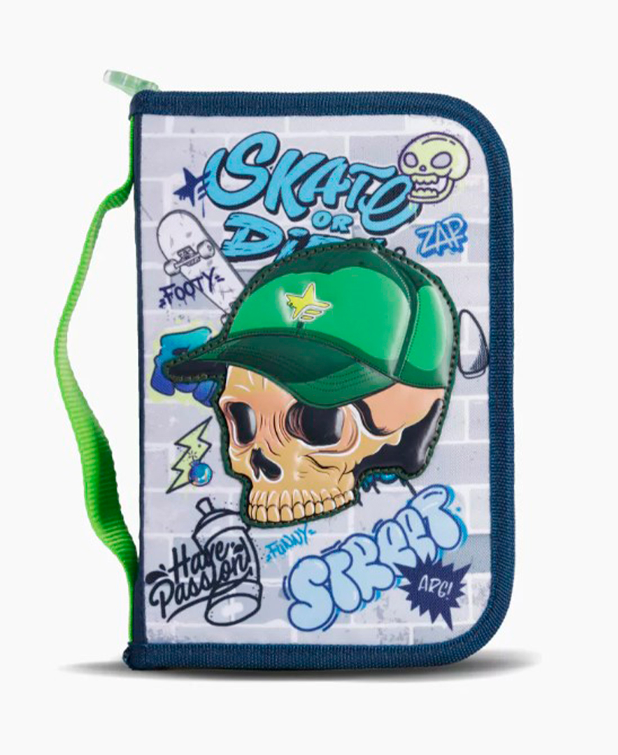 Cartuchera Footy Skull 1 Piso. Cartuchera de 1 piso desplegable