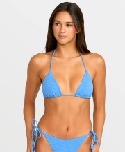 Corpiño Volcom Coco Halter. Triangulos slides Jaqcuard. Tasas desmontables. Breteles para atar en cuello y espalda. Remache Volcom a tono en lateral delantero. Jaqcuard / 91% poliéster reciclado / 9% elastano.