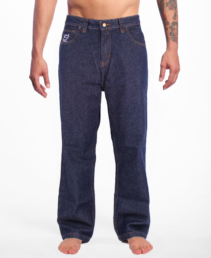 Jean Rip Cul Dosed Blue Raw. DENIM STRECH BLUE 10 Oz. Relaxed fit. Raw. Bordados de marca. Metales plata vieja. Costuras a contratono. 99% Algodon 1% Elastano.
