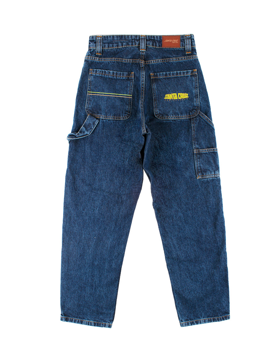 Jean Santa Cruz Malba Crash Dot. DENIM 10,8oz. 100% ALGODON. BAGGY FIT. Etiqueta de marca/talle. Soft stone wash. 5 bolsillos + carpintero. Atraques y ojal a tono. Bordado y alegoria en bolsillos de espalda. Presillas de 1,5 cm. Botón metálico marcario. Grifa de marca.