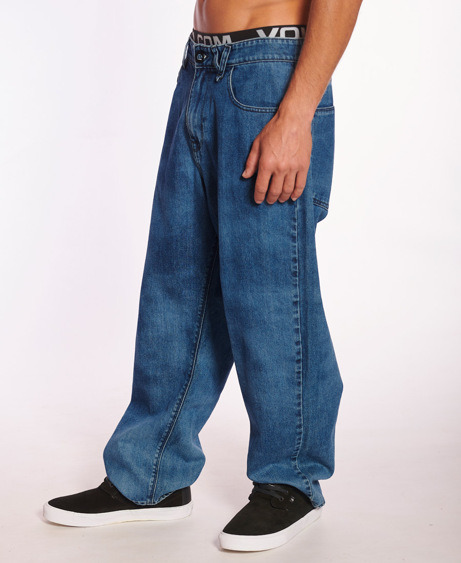 Jean Volcom Baggy Loose Billow Bright. Lavado suavizado, diamante bordado en bolsillo, Calce Baggy