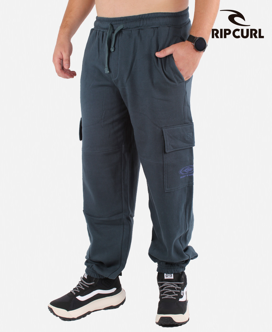 Jogging Rip Curl Rustic Cargo. Rústico invisible. Jogging cargo. Straight fit. Cintura y puños con elástico interno. Recorte en pierna trasera. Estampa en bolsillo lateral. Bolsillo plaqué trasero. Cordón chato por metro a tono. Multietiquetas. 90% algodón 10% poliéster.