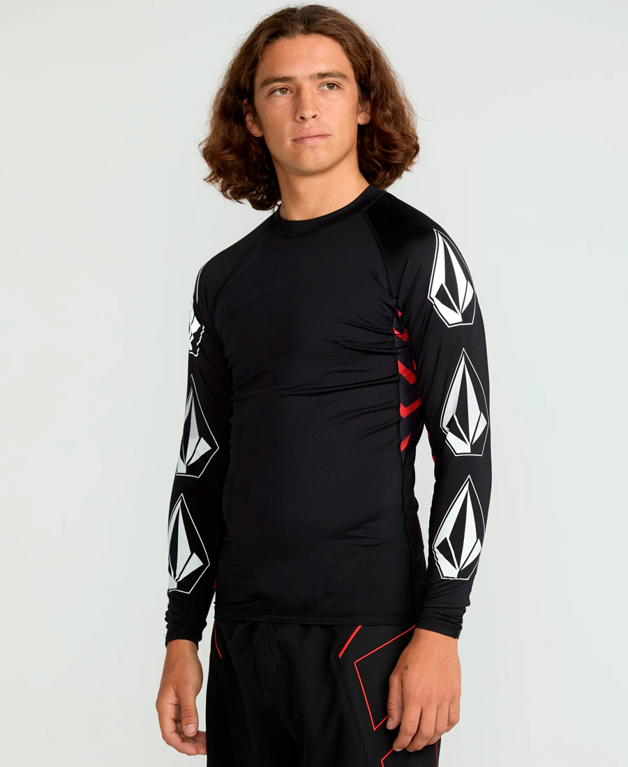 Lycra Volcom Surf Robinson UV 50. Regular Fit. Protección UV +50. Estampa en mangas. Ojal de cinta negra, expuesta. Costuras “flat”. Diseñado en colaboración con Jack Robinson. Lycra / 88% poliéster reciclado / 12% elastano.