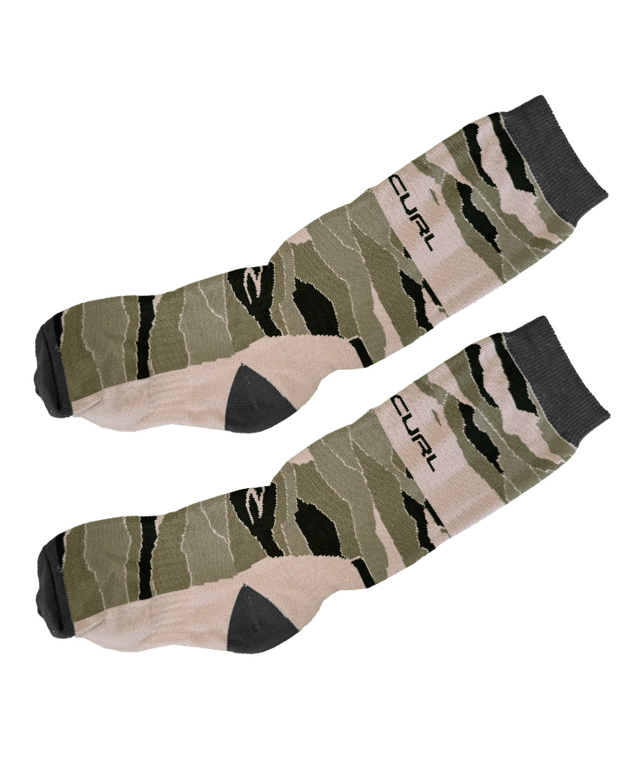 Medias Rip Curl Long Mountain x3. TÉRMICA. Refuerzo en talon y puntera. Logo a contratono. Calce long + liner. Pack x3. 95% Algodón 5% elastano.