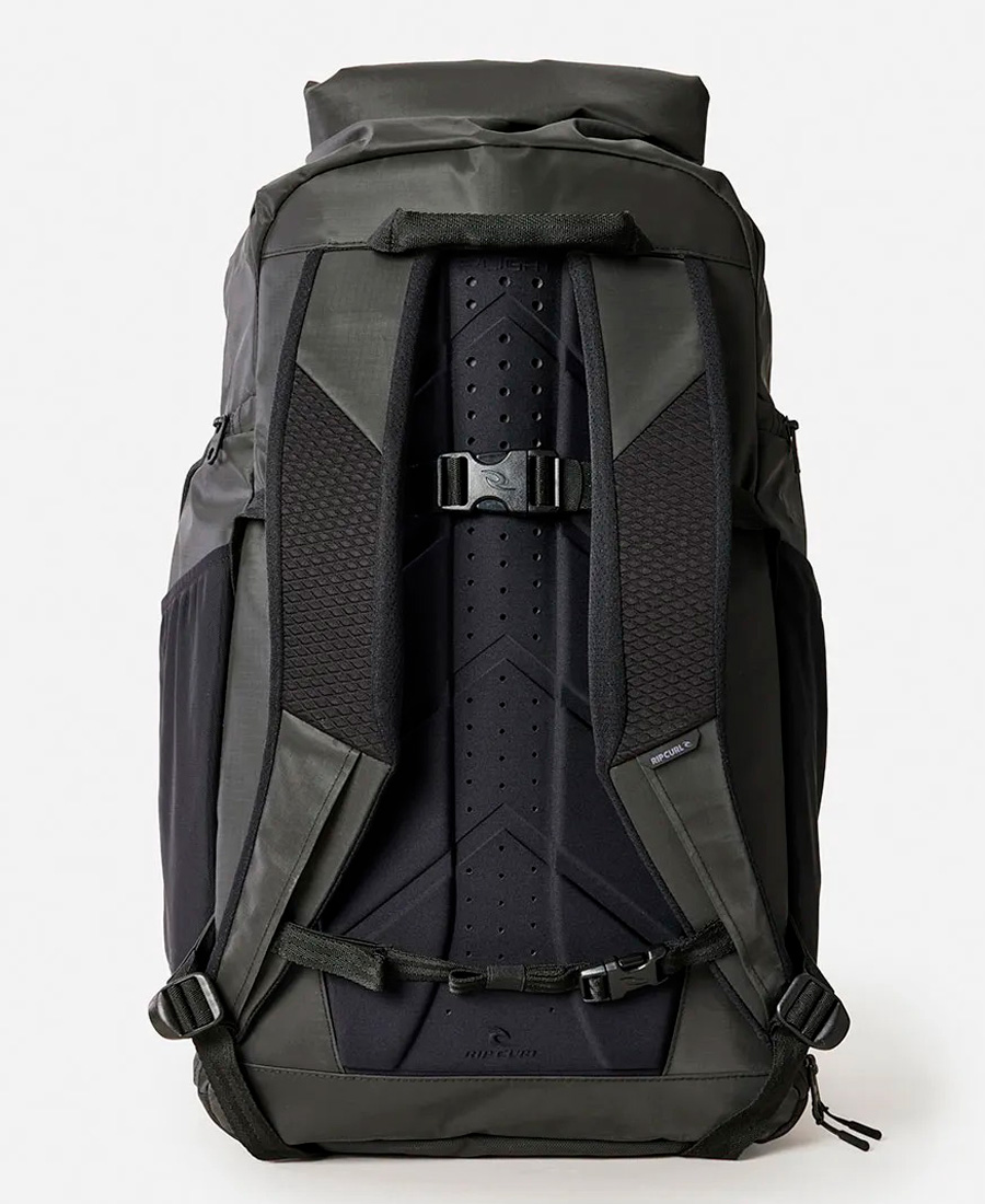 Composición principal: 100% poliéster, poliéster reciclado, Hydro protech, sección para portátil, sección húmeda/seca con rodillo y clip, organizador de aletas específico, panel frontal de EVA moldeada para mayor protección, organizador externo para cera y crema solar, bolsillo técnico forrado de sudadera, bolsillo aislante para botella de bebida, correas transpirables.