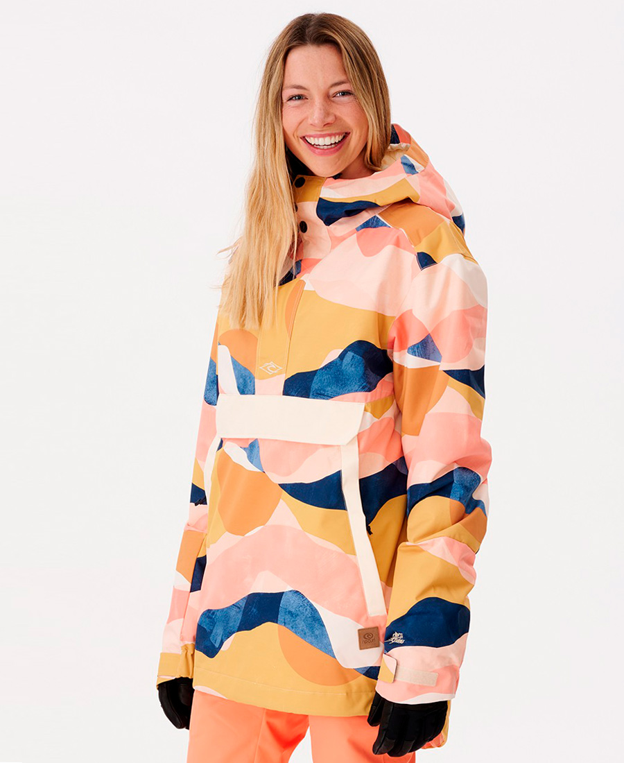 Campera Rip Curl Rider Anorak chaqueta de nieve para mujer de nuestra colección Anti-Series que proporciona calor transpirable a las guerreras de la montaña. Diseñada con una membrana resistente al agua 10k/10k, una fabricación ligera y un tratamiento hidrófugo DWR, está hecha para soportar el frío, el viento y la lluvia. Además, cuenta con un bolsillo frontal tipo anorak y puños con velcro