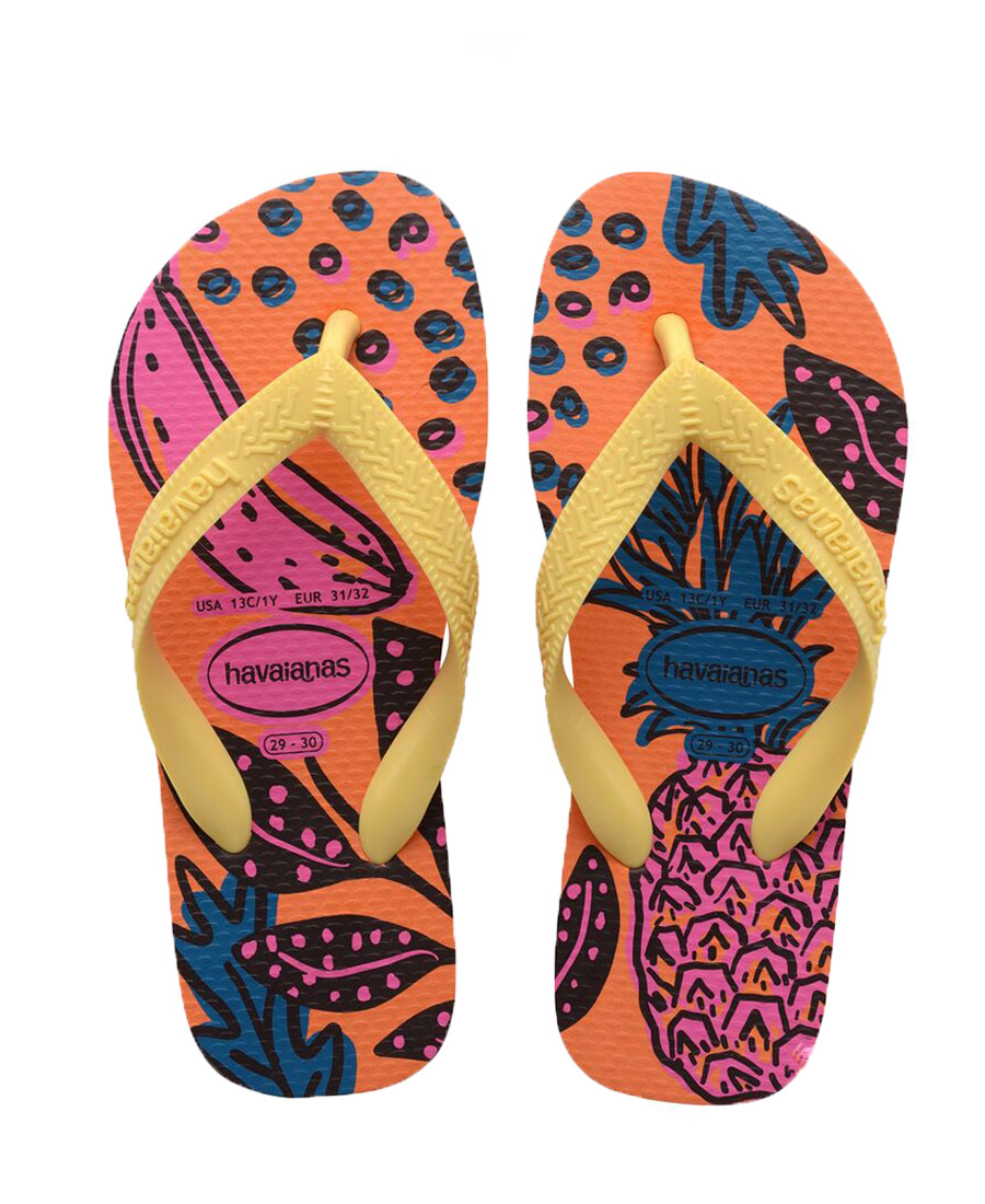 Ojotas Havaianas Fashion Coral. Logo Havaianas. Fantasía en el talón. Plantilla punto de rizo.
