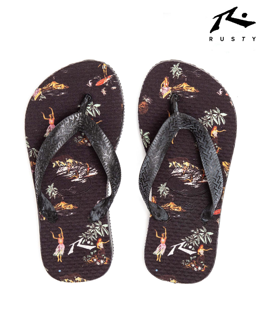 Ojotas Rusty Kona Hobby. Ojota Base EVA con arte digital en aplicación textil. Tira con logo en relieve al tono.