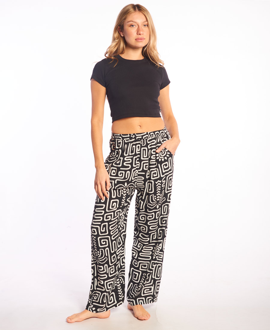 Pantalón Rip Curl Wide Loulu. FIBRANA LINO FULL PRINT. WIDE FIT. Bolsillos laterales. Chapita logo RC. Multietiquetas. 100% algodón.