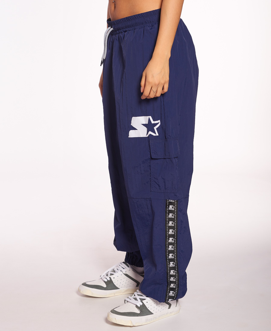 Pantalón Starter Baggy Cargo. Taslon. 100% Nylon, Cintura elastizada con cordón. Cierre y elastico en botamanga. Estampa en laterales, bolsillos cargo.