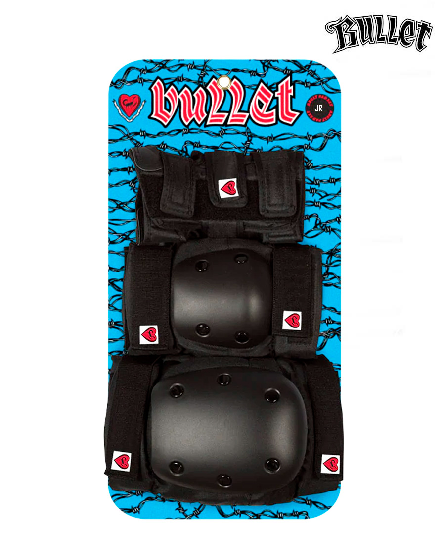 Set triple de protecciones para ñiños Bullet. Incluye rodillera, codera y muñequera.