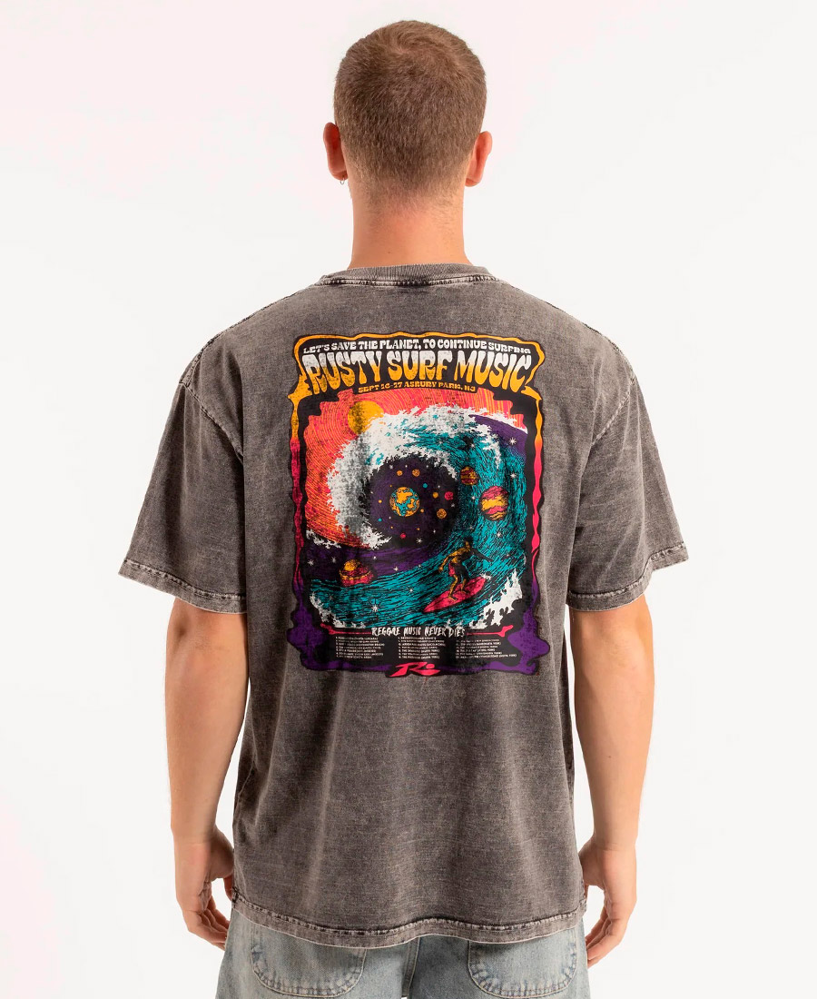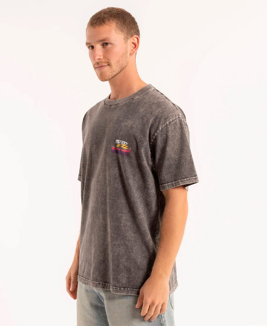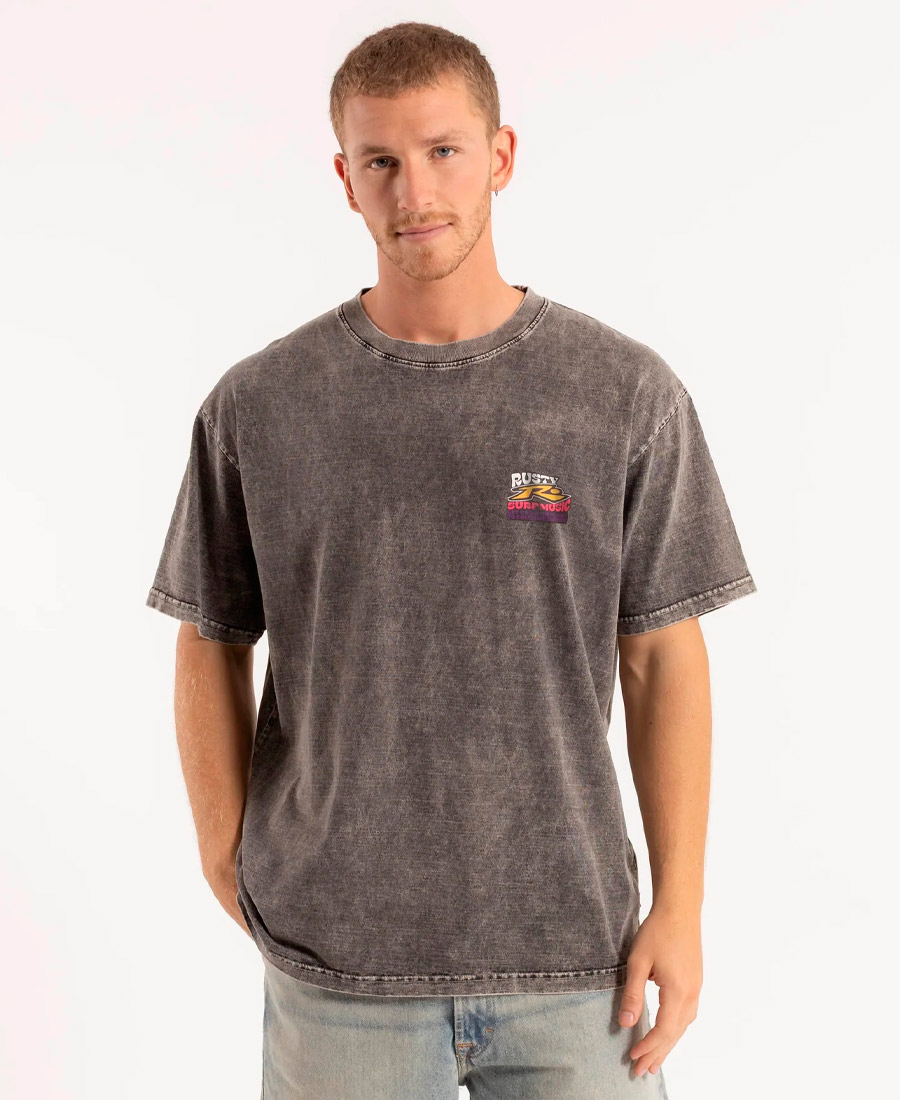 Remera Rusty Stp Process. Cuello alto. Estampa frente y espalda. Láser process, prelavado y preencogido. Tejido: Jersey 24/1. Composición: 100% Algodón Peinado. Calce Relaxed Fit. Origen nacional.