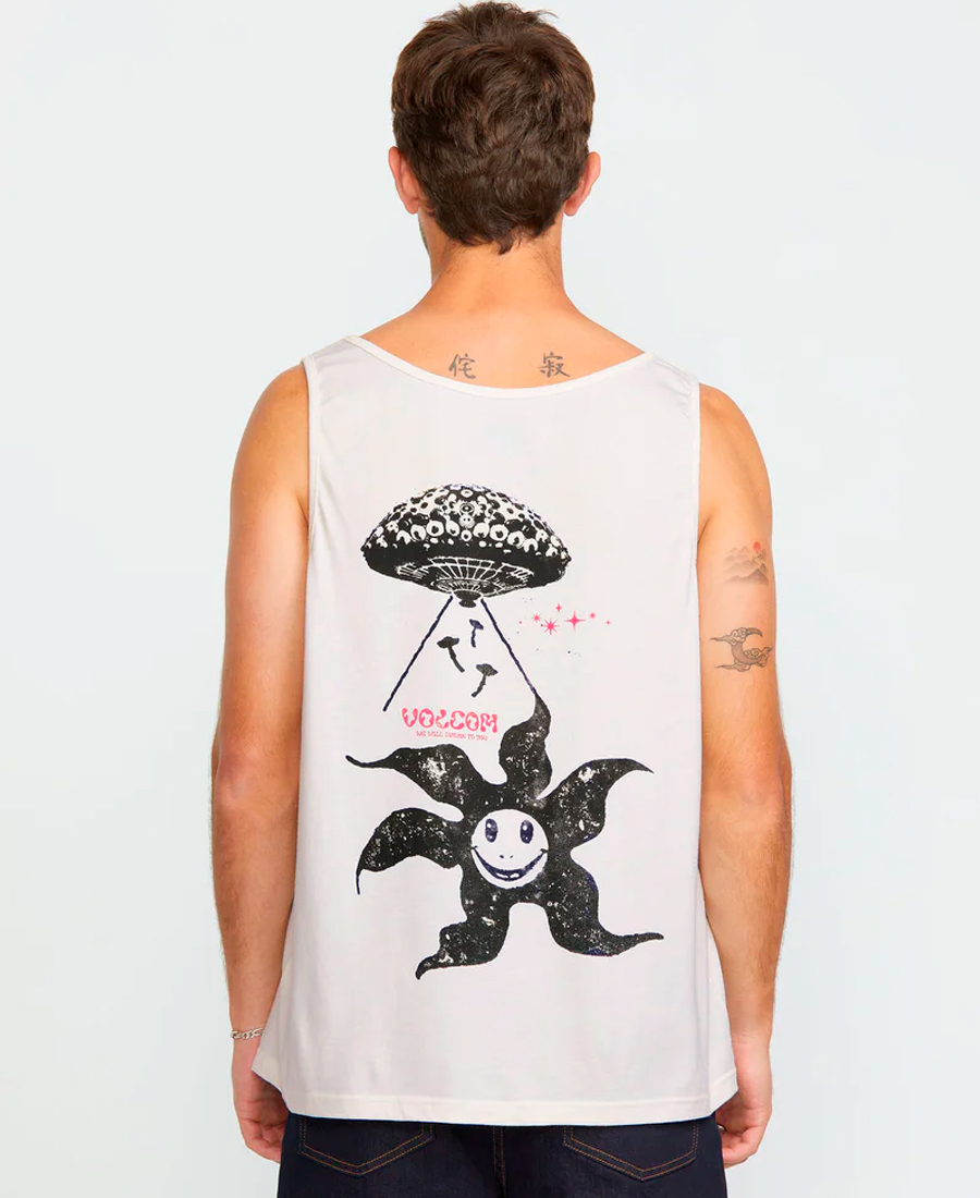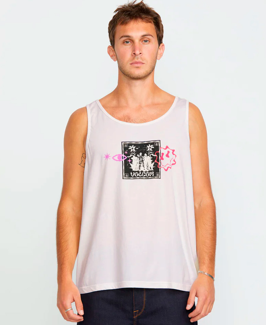 Musculosa Volcom Rygalski. Loose Fit. Escote y sisas envivados al tono. Etiqueta de talle estampada. Grifa Volcom. Estampa en delantero y espalda en colaboracipon con el artista RIGALSKI. Jersey 24/1 / 100% algodón.