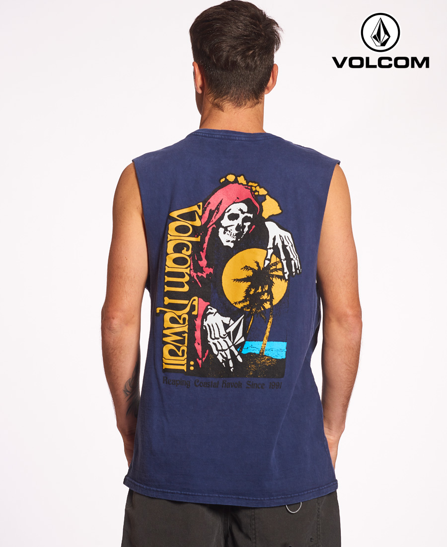 emera sin mangas Volcom Beach Reaper. Basic Fit • Sisas al corte • Estampa en delantero y espalda • Limpieza de cuello en jersey rayado PACK X24 • Grifa tejida en lateral • Etiqueta de talle estampada • Lavado process