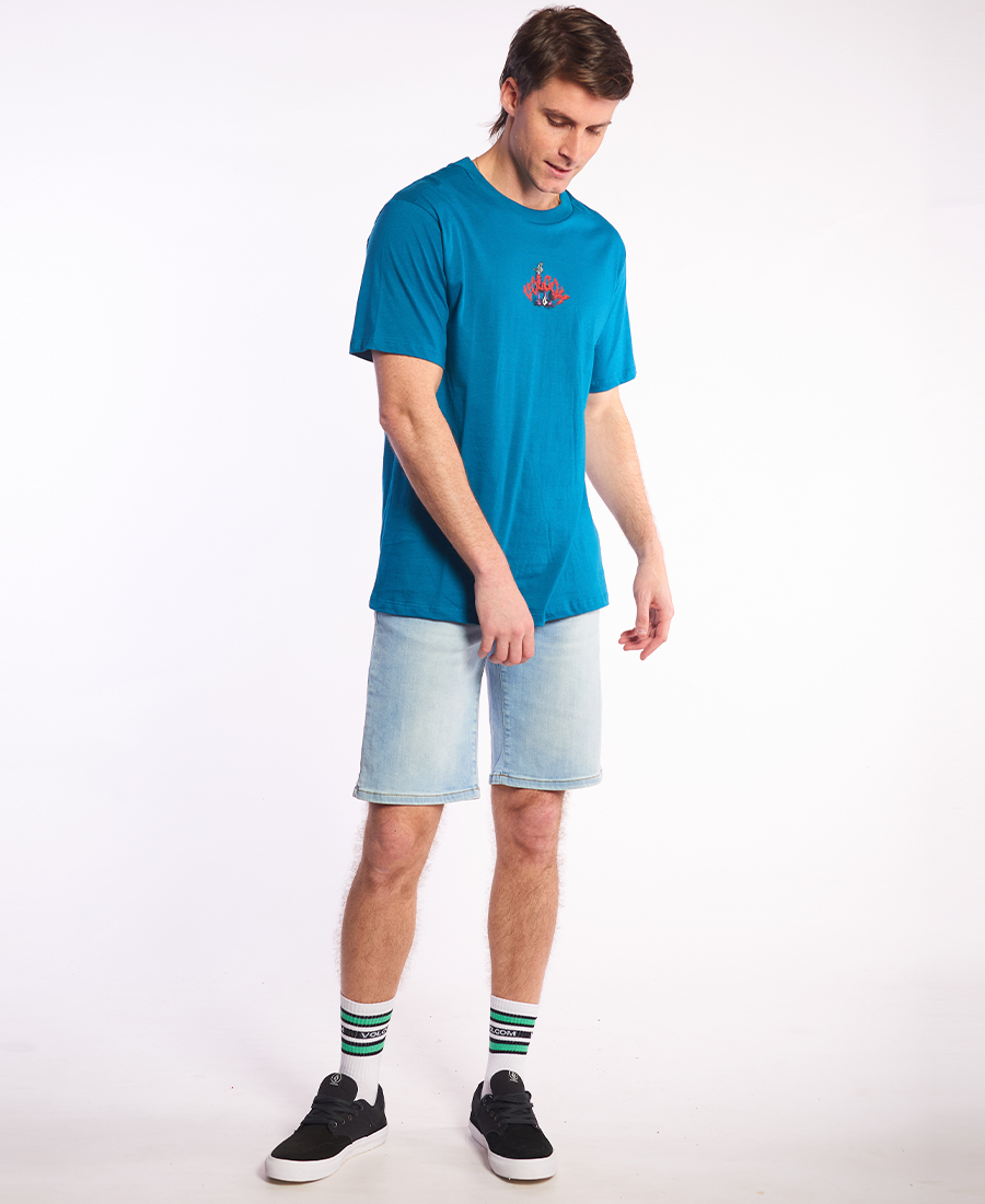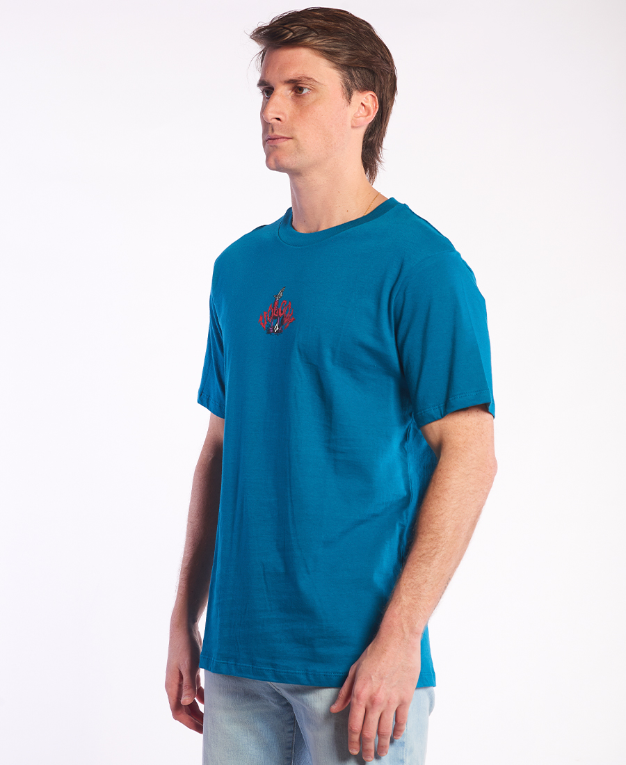 Remera Volcom Awakened Unisex • Relax Fit y cuello alto • Estampa en delantero • Grifa Volcom • Limpieza de cuello en jersey rayado • Etiqueta de talle estampada.