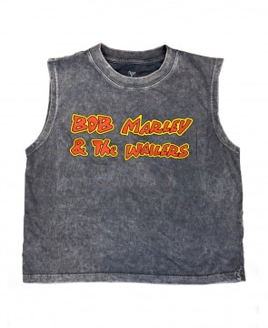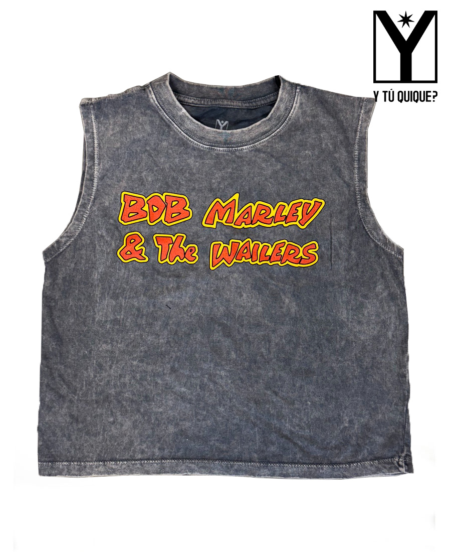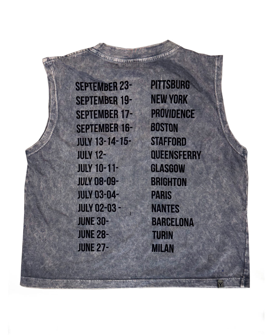 Remera Y Tú Quique? Crop Acid Tour. Sin mangas con estampa frontal y espalda. Lavado acid.