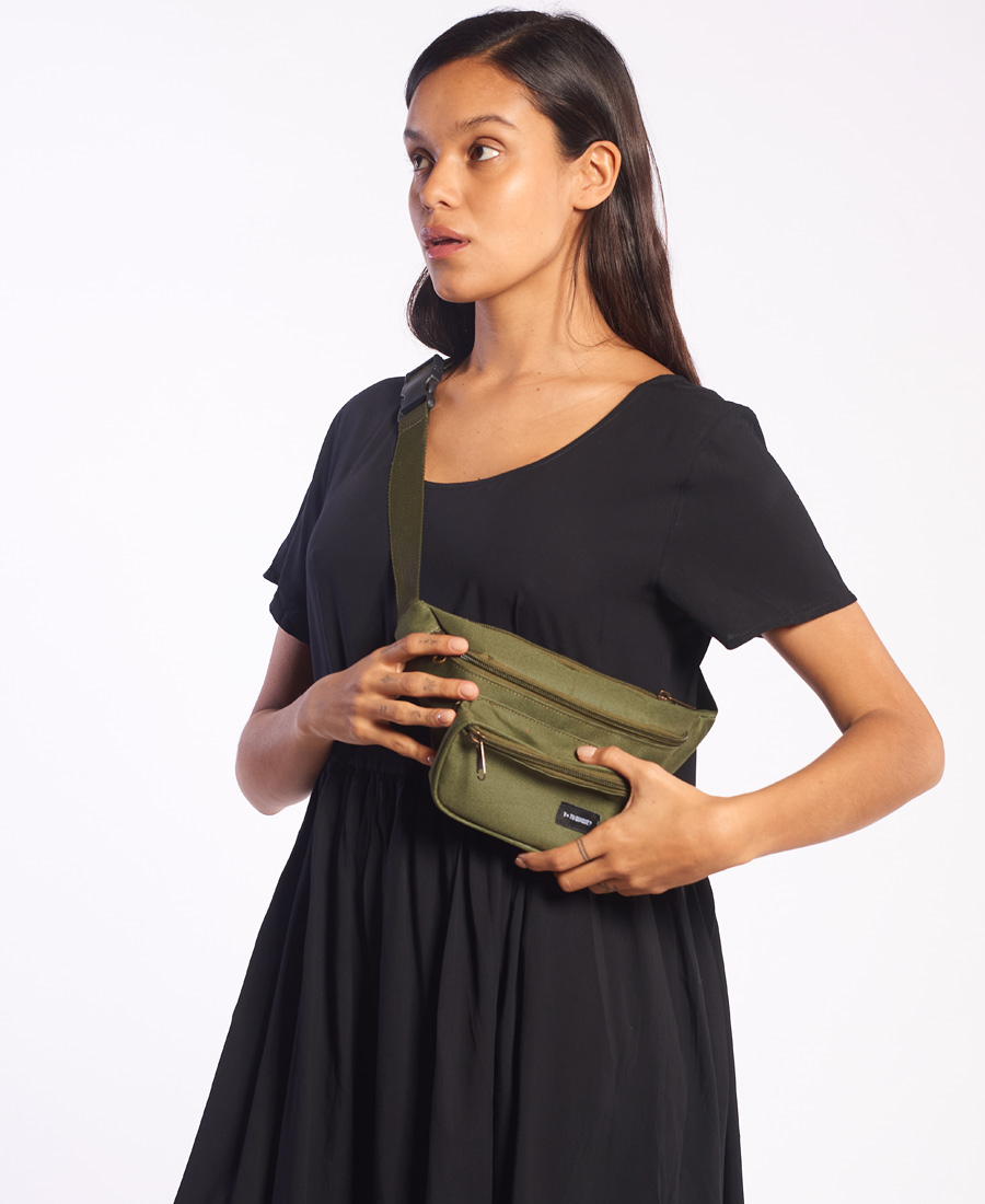 Riñonera Y Tú Quique? Pocket Unisex en cordura. 3 compartimientos con cremallera, correa ajustable.