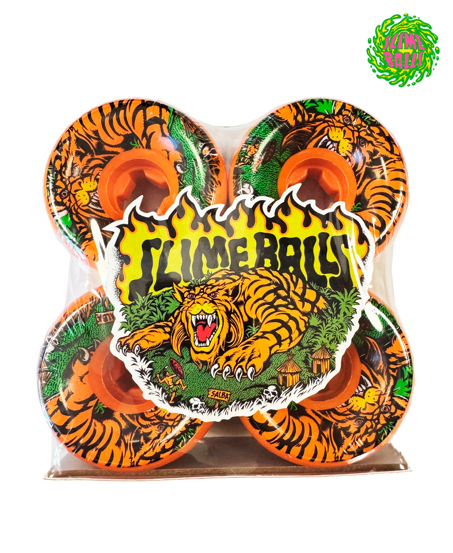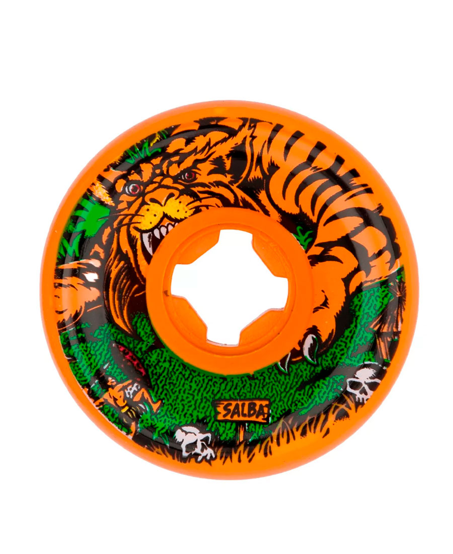 Estas ruedas de alto rendimiento cuentan con un diseño exclusivo inspirado en las icónicas gráficas de Santa Cruz, presentando el feroz Salba Tiger en una vibrante impresión sobre la superficie de las ruedas.