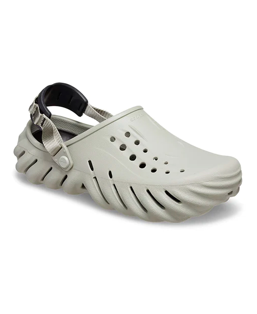 Suecos Crocs Echo Clog. Increíblemente ligero y fácil de llevar Parte superior y base de Croslite™ completamente moldeados Respetuoso con el agua y boyante; pesa solo onzas Los puertos de ventilación añaden transpirabilidad y ayudan a eliminar el agua. Fácil de limpiar y de secado rápido Almohadilla en el talón en la correa trasera para mayor comodidad. Personalizable con dijes Jibbitz™ Soporte de doble densidad con suela Croslite™ y LiteRide™