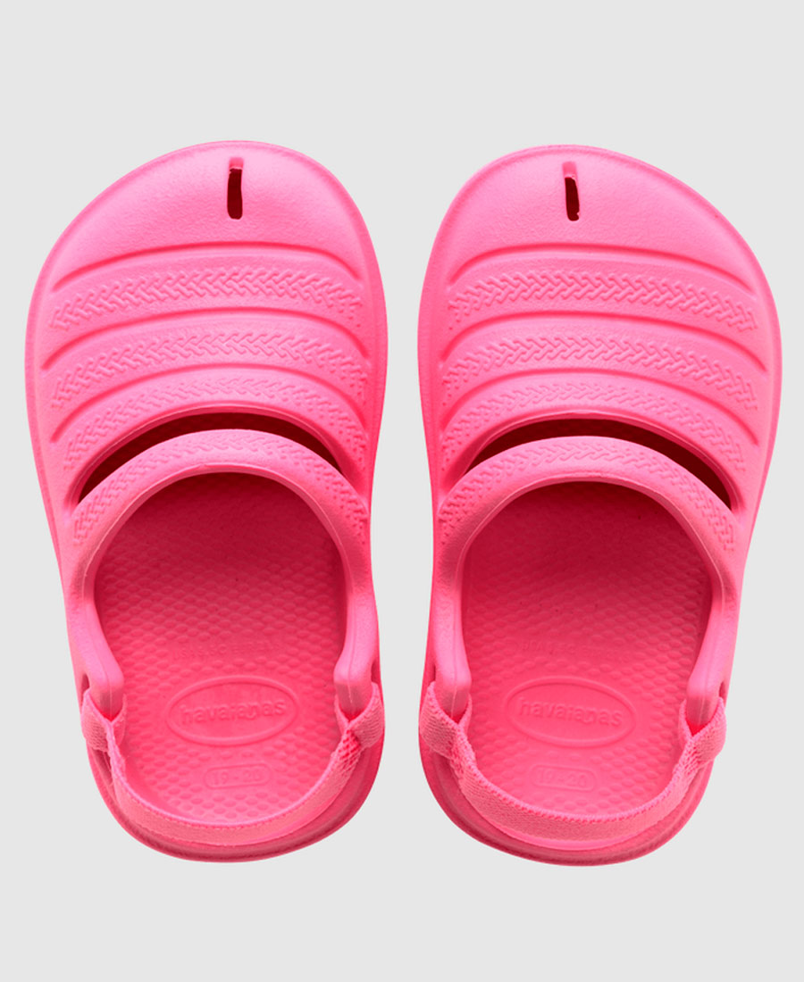 Suecos Havaianas Baby Clog. Este modelo para bebé tiene todo el estilo de Havaianas. La parte superior tiene tiras y en el talón tiene el tradicional elástico para que no se resbale del pie. ¡Práctico y muy bonito!