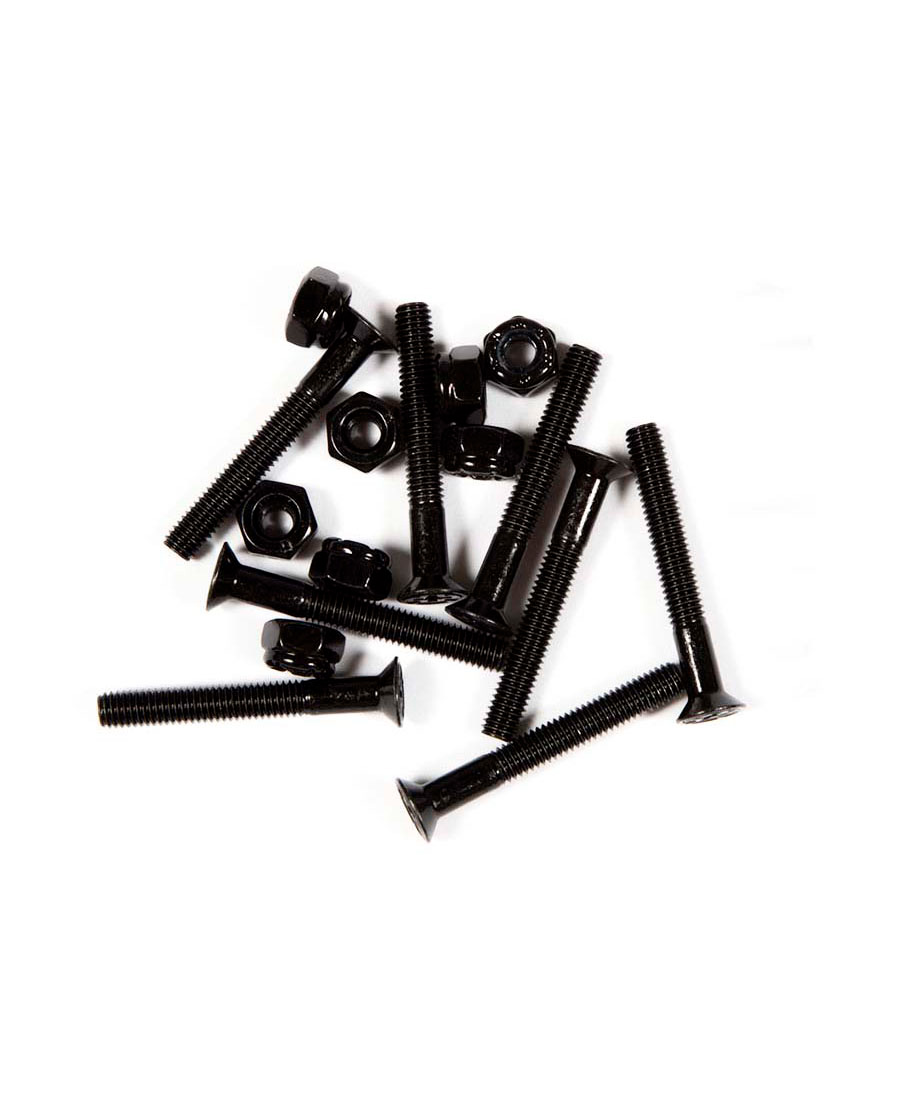 Tornillos Independent Phillips Hardware Black. Se especifica con los más altos estándares. Cada juego cuenta con cabezas de logotipo en cruz, tuercas de seguridad de tamaño completo, cabezas de perno de tamaño completo con insignia Cross y ejes extendidos sin rosca para un daño mínimo en la tabla.