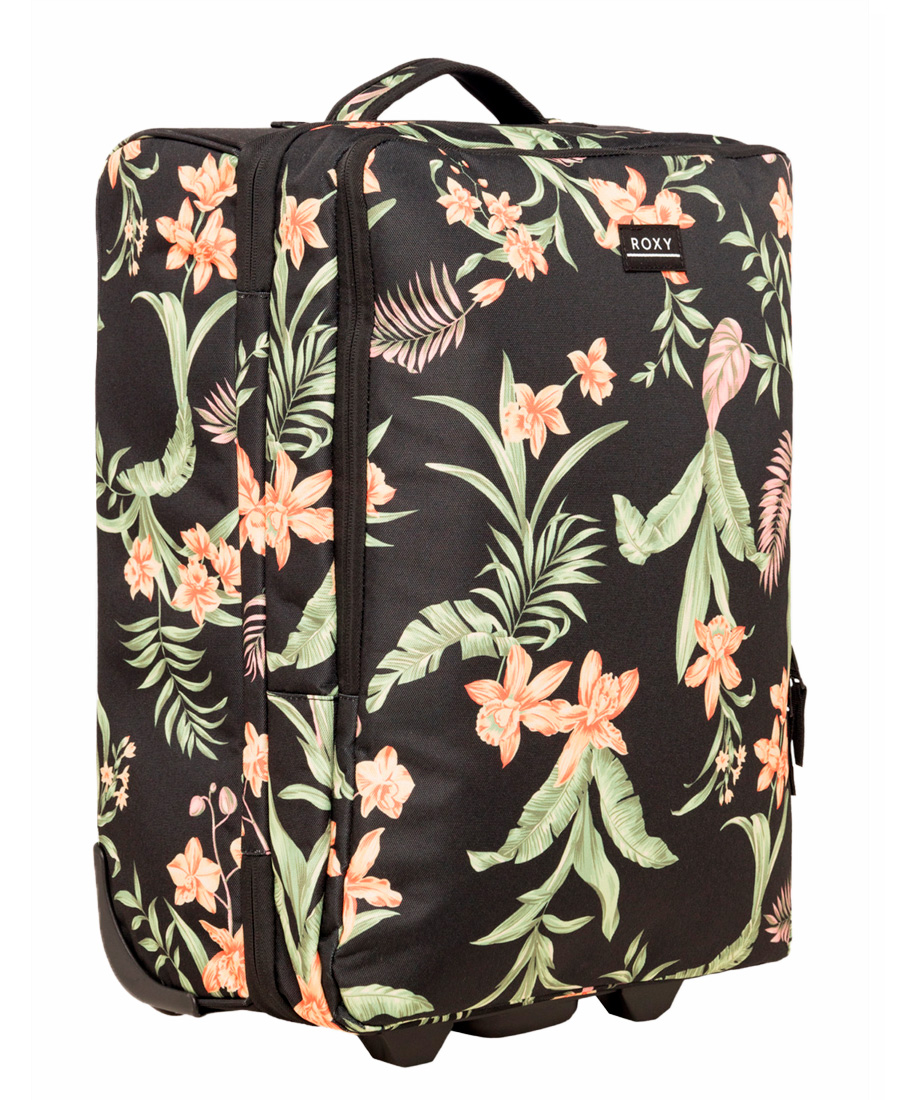 Valija Roxy Cabien Paradise 32L. Carry on. Tejido: poliéster estampado. 1 compartimento principal con cavidades con cierre en dos niveles. Compartimento acolchado para laptop. 1 bolsillo con cierre en la parte frontal con 1 bolsillo para iPad. 1 bolsillo en mesh. Asa superior, lateral y frontal acolchadas. Asa telescópica retráctil. Sistema de ruedas suaves. Bolsillo con cierre en la parte frontal. Base ligera moldeada con logo Roxy. Parche de algodón ROXY. Medidas: 47 [alto] x 34 [ancho] x 20 [profundidad] cm. Volumen: 32 L de capacidad. Peso: 2,4 kg. Otras características: sistema de ruedas. Tamaño cabina. TELA: 100% Poliéster reciclado.