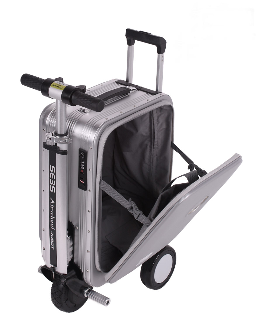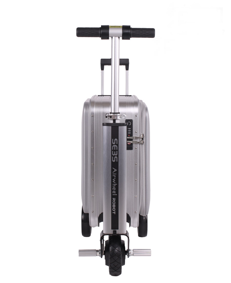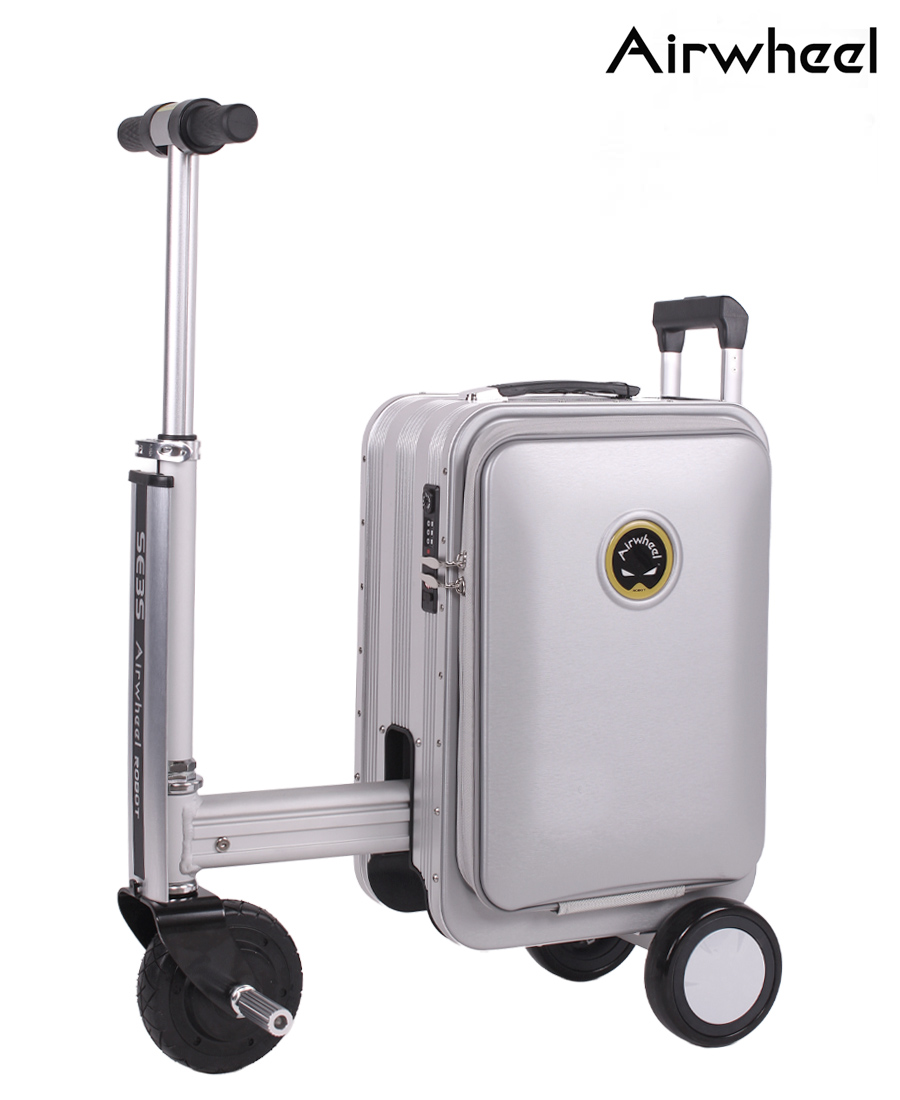 La maleta eléctrica de conducción inteligente puede subir con una sola carga, a 13 kilómetros por hora. Es liviano y se puede convertir fácilmente de motor a uso con tracción trasera. Viene con dos puertos de carga USB para sus dispositivos electrónicos.