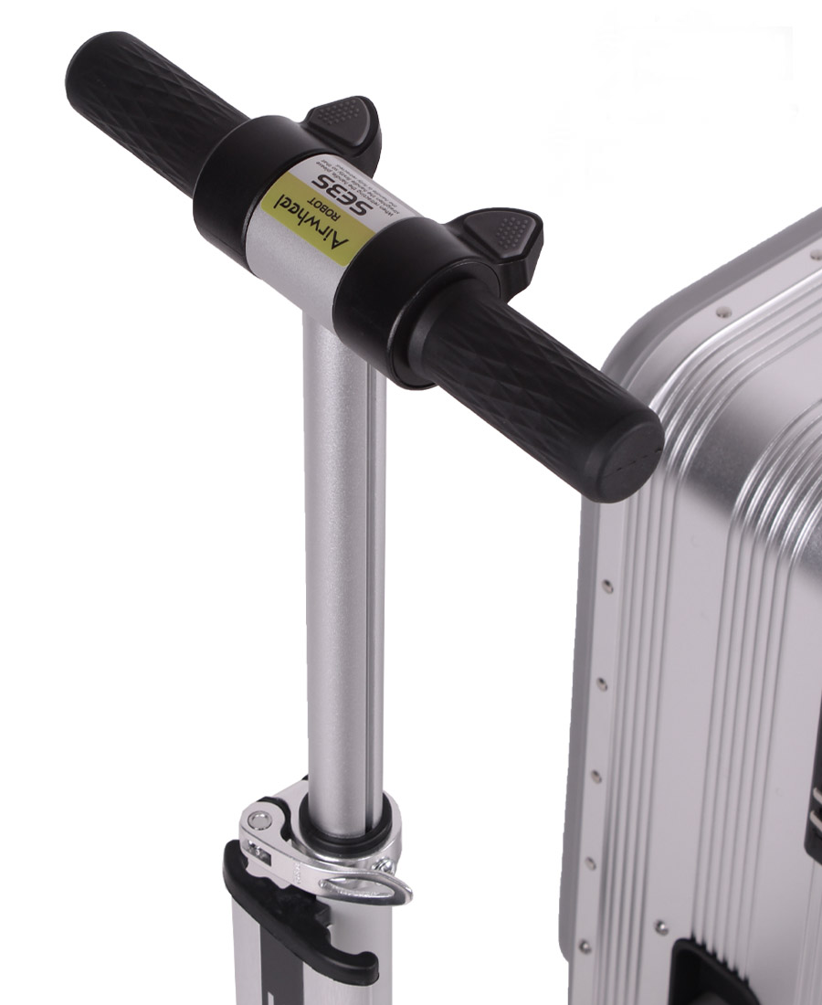 El equipaje para montar SE3S tiene una función de conducción inteligente. Saque el poste de montar oculto para montar.Al tomar un vuelo, la batería de litio adopta un diseño enchufable externo, que se puede quitar para cumplir con las regulaciones de inspección de seguridad, y se puede usar como un banco de energía para cargar dispositivos electrónicos portátiles. Puertos de carga USB duales, viajes sin preocupaciones, carga de teléfonos móviles, tabletas y otros dispositivos electrónicos portátiles en cualquier momento.