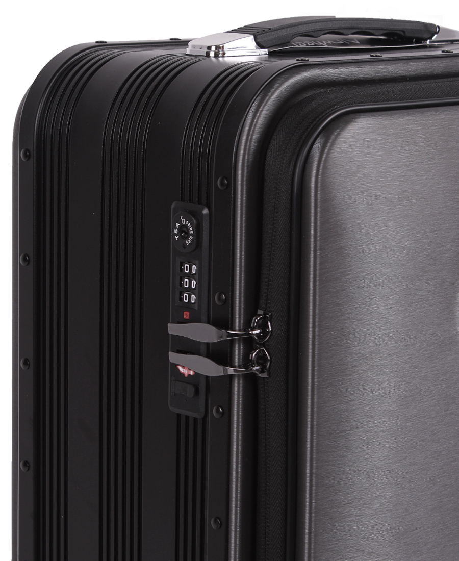 Marco de aluminio, carga de 110 kg. Llévala a viajar con confianza. Aleación de aluminio de alta calidad de la serie 6. Marco de una pieza para garantizar que el cuerpo de la maleta sea estable y no se deforme.