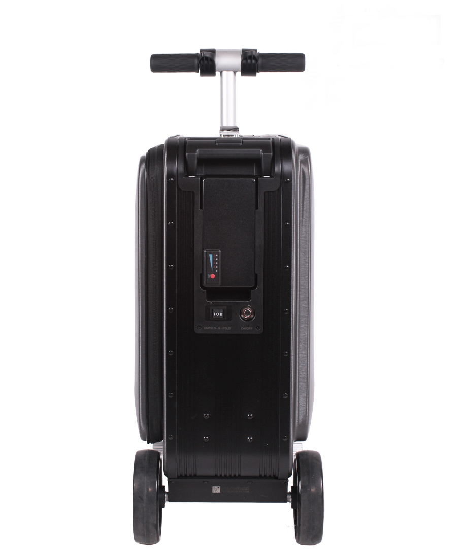 El equipaje para montar SE3S tiene una función de conducción inteligente. Saque el poste de montar oculto para montar.Al tomar un vuelo, la batería de litio adopta un diseño enchufable externo, que se puede quitar para cumplir con las regulaciones de inspección de seguridad, y se puede usar como un banco de energía para cargar dispositivos electrónicos portátiles. Puertos de carga USB duales, viajes sin preocupaciones, carga de teléfonos móviles, tabletas y otros dispositivos electrónicos portátiles en cualquier momento.