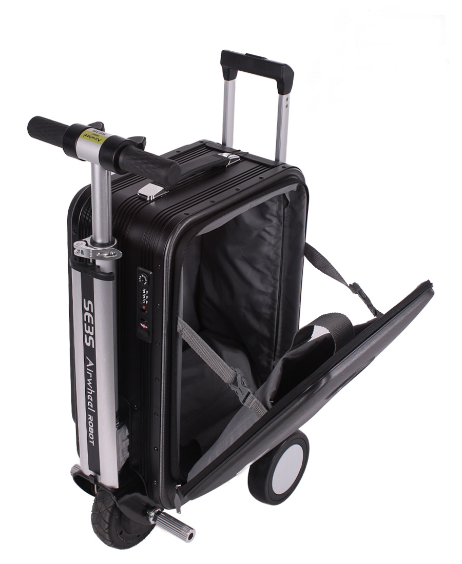 La maleta eléctrica de conducción inteligente puede subir con una sola carga, a 13 kilómetros por hora. Es liviano y se puede convertir fácilmente de motor a uso con tracción trasera. Viene con dos puertos de carga USB para sus dispositivos electrónicos.