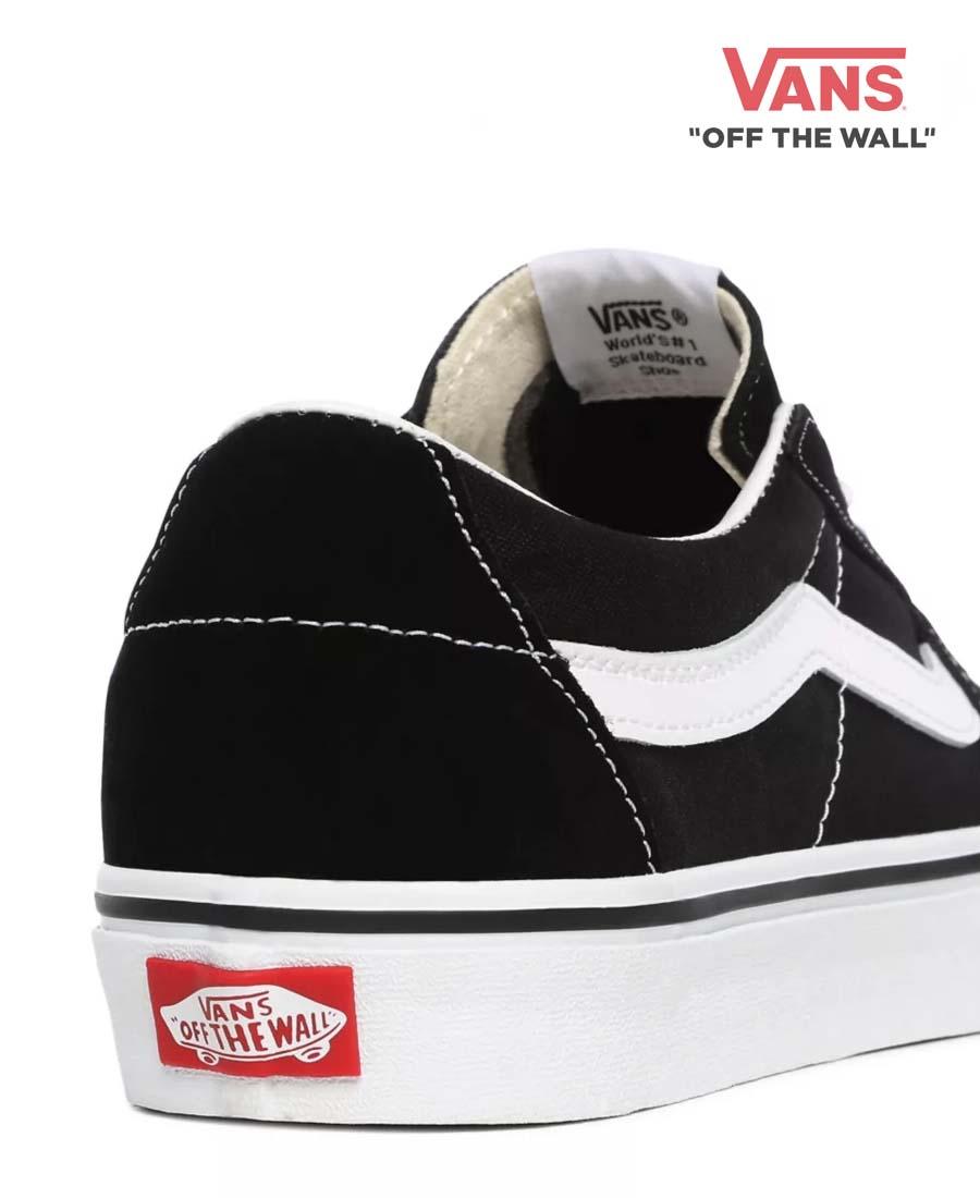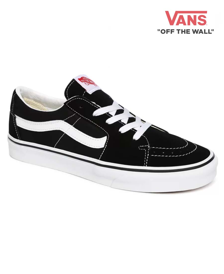 Zapatillas Vans SK8 Low. Con una parte superior de lona y gamuza resistente, el Sk8-Low también incluye punteras reforzadas para resistir el uso repetido, cuellos acolchados para brindar soporte y flexibilidad, y las exclusivas suelas de goma tipo gofre. Ideal para aquellos que recién se inician en una patineta y para viajes ligeros. No recomendado para trucos o patinaje pesado.